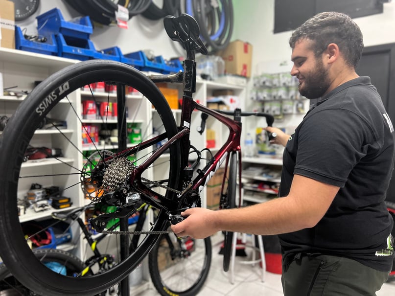 Nuestro mecánicos especializados revisan y preparan cada una de nuestras bicis cuidadosamente antes de salir para su nuevo destino.